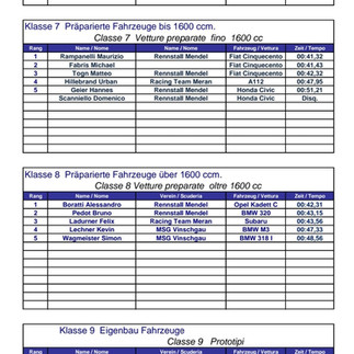 Mit hauchdünnen Zeitabständen machten vier Piloten den Kampf um die Tagesbestzeit bis zum Abend hin spannend. Bis zum Schluß plazierten sich alle vier innerhalb von nur einer Sekunde! Aber auch in den einzelnen Klassen versuchte jeder seine Laufzeiten zu verbessern. Der amtierende Landesmeister Rampanelli Maurizio vom Rennstall Mendel holt sich den Tagessieg vor Fabris Michael (beide FIAT Cinquecento) und seinem Vereinskollegen Boratti Alessandro (Opel Kadett GT/E). Als bester Pilot des Racing Team Meran platziert sich Ladurner Felix (Subaru Impreza) auf Rang 6 in der Gesamtwertung, auch Pichler Elmar und Hillebrand Urban fahren in die "Topten" und Leiter Julia ist die schnellste in der Damenklasse!